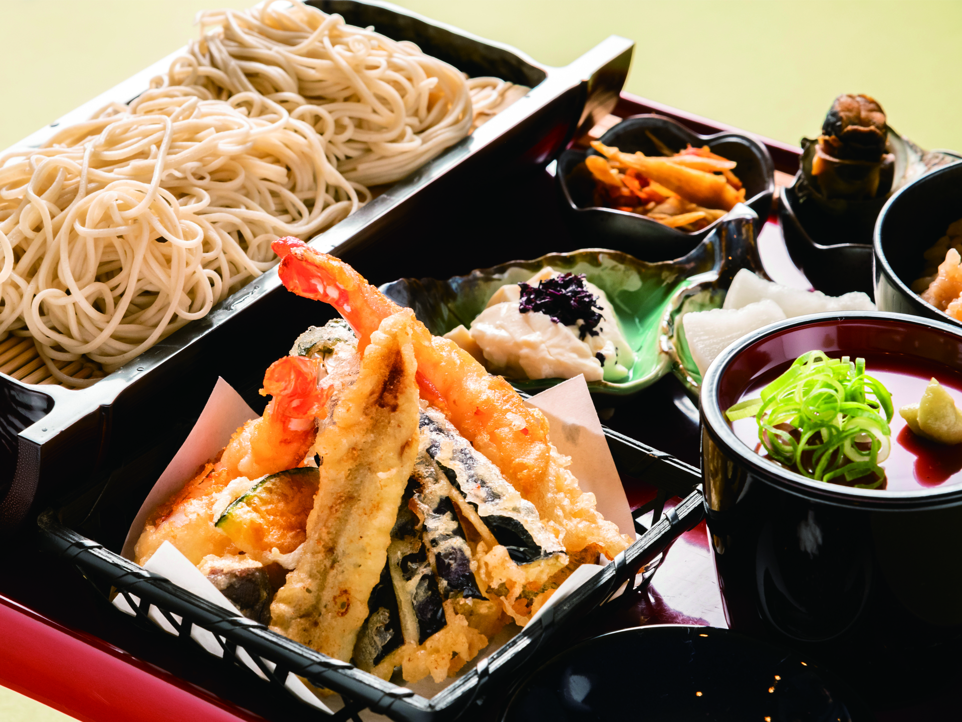 地域の新鮮な食材を使用した和食をご用意。お蕎麦、地元のお野菜など季節の具材の天ぷら、気まぐれ海鮮味ご飯、小鉢など。